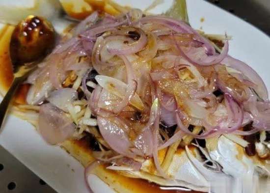 - 粤式洋葱蒸鱼 - 清淡鲜美,粤式风味。