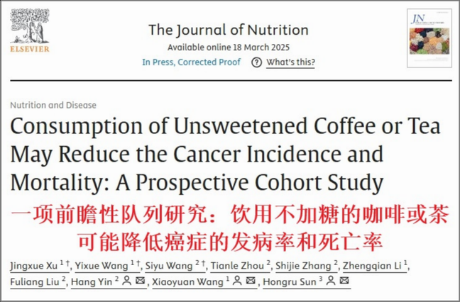 ⑦Consumption of Unsweetened Coffee or Tea May Reduce the Cancer Incidence and Mortality: A Prospective Cohort Study. J Nutr. 2025.
