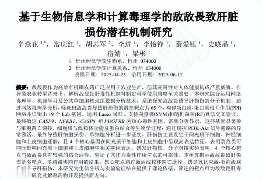 基于生物信息学和计算毒理学的敌敌畏致肝脏损伤潜在机制研究 网络首发辛燕花:常庆红;胡志军·李进;李怡铮>生态毒理学报2025-09-29