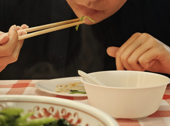 用餐时把菜夹到碗里时,可以在碗边沥一下,减少附带的汤汁。