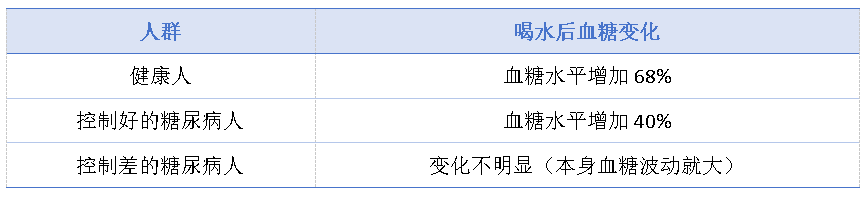 结果显示,健康人和控制好的糖尿病人餐后血糖都会因为喝水而显著升高。③