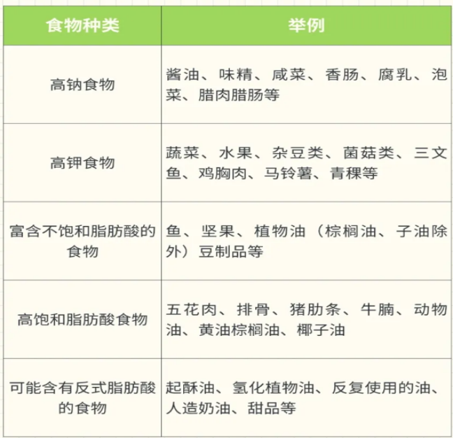 减少钠盐摄入量:建议每人每日食盐摄入量逐步降至5g以下,控制高钠食物摄入,可以选择低钠盐(肾病、高钾血症除外)。日常生活中要避免食用腌制食品、加工肉类、酱油等高钠食物。烹饪时不妨用醋、柠檬汁、香料来替代部分盐分,