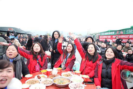 1月24日,重庆市永川区十里荷香年味文化节拉开帷幕。活动现场除了精彩的文艺节目,最受期待的莫过于千人坝坝宴。席间,糖粑粑、糖醋鱼、炸酥肉、十里荷香豆花等一道道传统年味菜品陆续上桌,让大家在欣赏节目之余,尽情畅享舌尖上的美味。