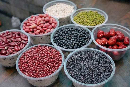 红豆、绿豆、薏米、大枣、黑糯米、黑豆、花生等八种食材。