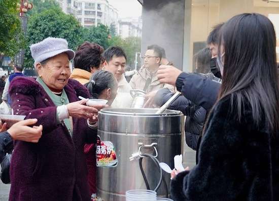浓情腊八,粥润心田。腊月初八喝腊八粥的习俗在我国已有千年之久,民间有“过了腊八就是年”“喝过腊八粥,来年无灾无难”的说法。1月26日,正值农历腊月初八,贵州省铜仁市思南县在城区江岸名都思丰财富广场举办“福满腊八·诸事粥全”为主题的免费派发腊八粥活动,向过往市民免费提供腊八粥,弘扬中华传统文化,为新年平添一份暖意和吉祥。