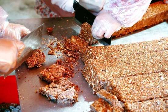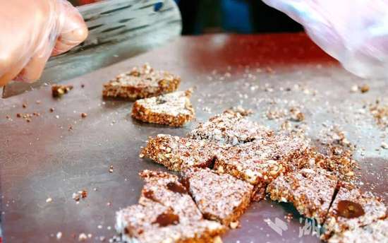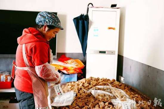 熬好的红薯糖,是明安珍施展手艺的基础。将米花、芝麻、苞谷分别炒香,加入红薯糖,快速搅拌均匀后倒入模具中,压实、冷却,最后切成大小均匀的块状。“做这些零食得手脚麻利,糖凉了就硬了,拌不均匀口感就差了。”明安珍的米花糖蓬松酥脆,芝麻糖香甜醇厚,苞谷花糖带着淡淡的谷物清香,每一口,是老竹溪最地道的滋味。