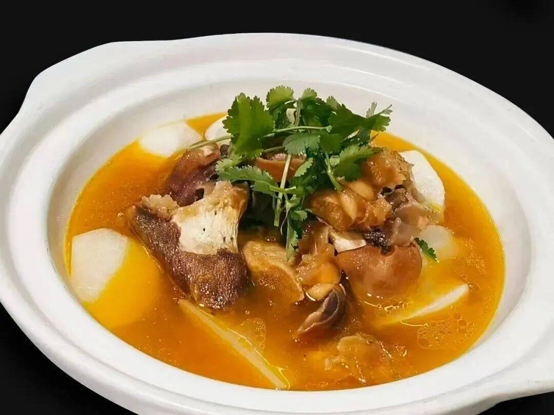 天晓德牛八卦是一款滋补佳肴。采用精选黄牛蹄,老母鸡原汤喂入味,清淡又不失味浓,口感软糯,入口即化,满满的胶原蛋白。白萝卜吸收汤汁的精华软烂清甜,汤汁金黄香浓,泡一碗香喷喷的米饭爽极了。
