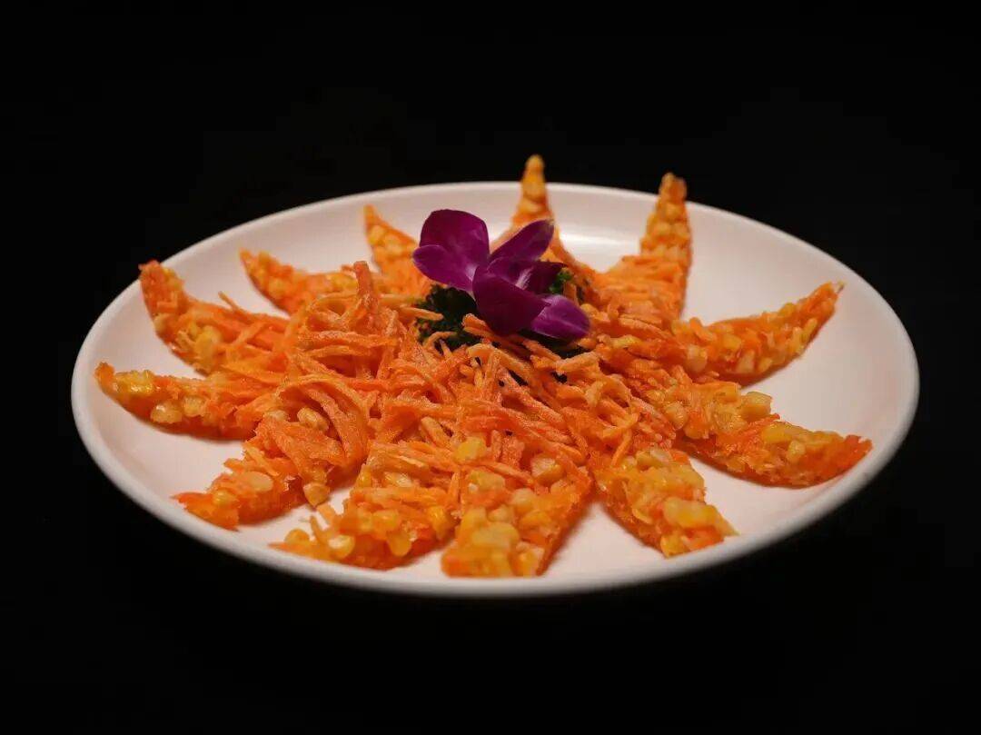 汉南人巧手做点心,将玉米粒混黄油椰蓉炸成球,淋芝士玉米汁,盛入酥炸面皮盏,便是“脆盏甜玉米球”,入口清甜爆汁,盏托咔滋酥脆,是当地招待客人的拿手点心,每一口都藏着汉南人的丰收喜悦与生活巧思。