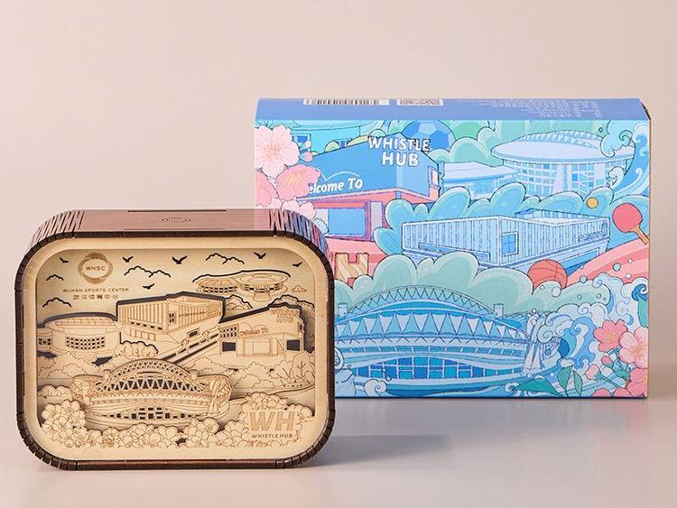 体育中心木质文创夜灯,用木材自带的温润触感展现“中国车谷”硬核的工业力量、宏大的体育赛事与灵动的生态景观,实现“温暖的转译”。