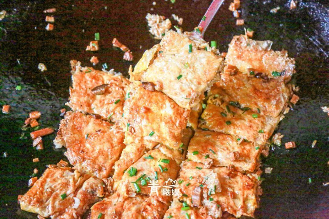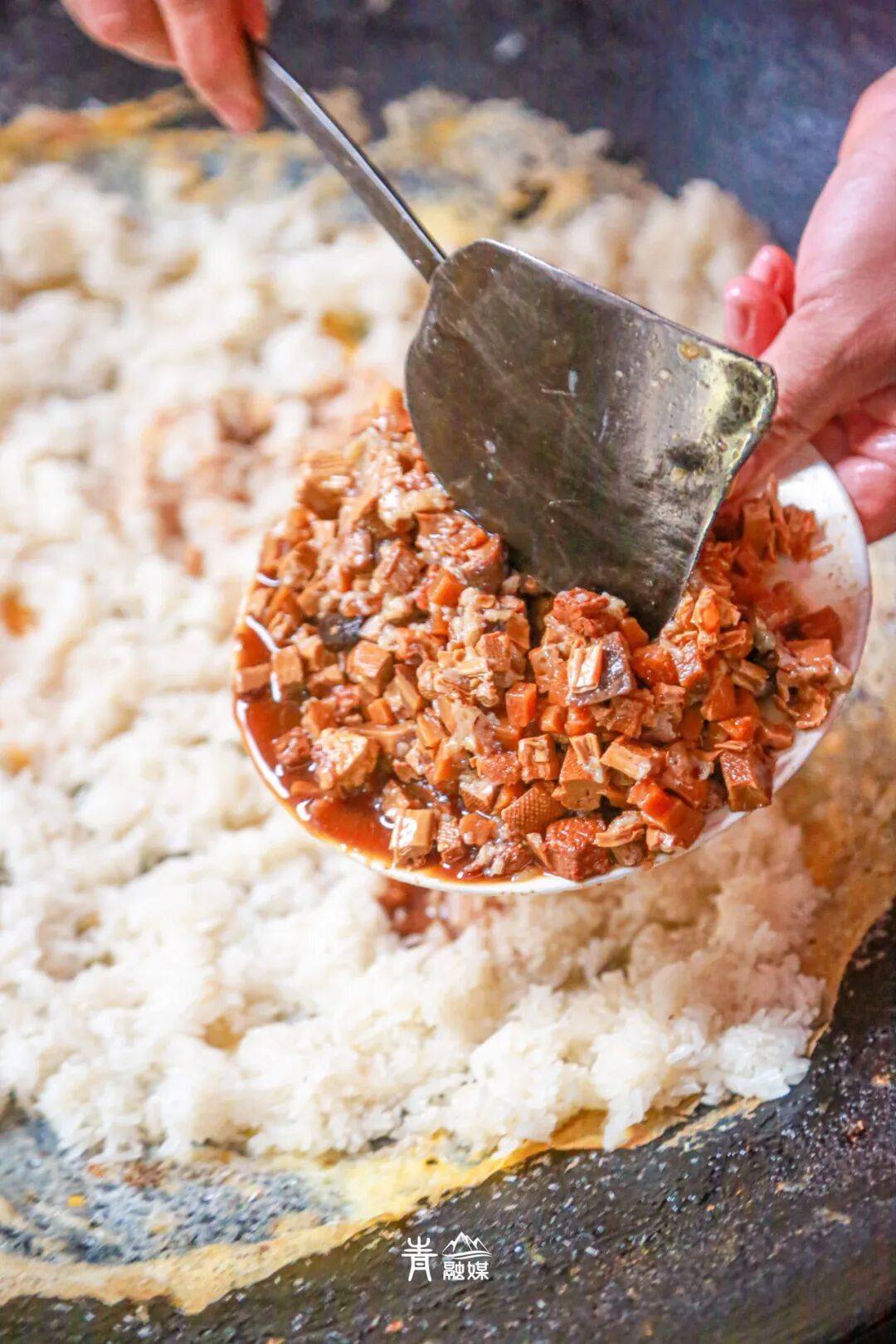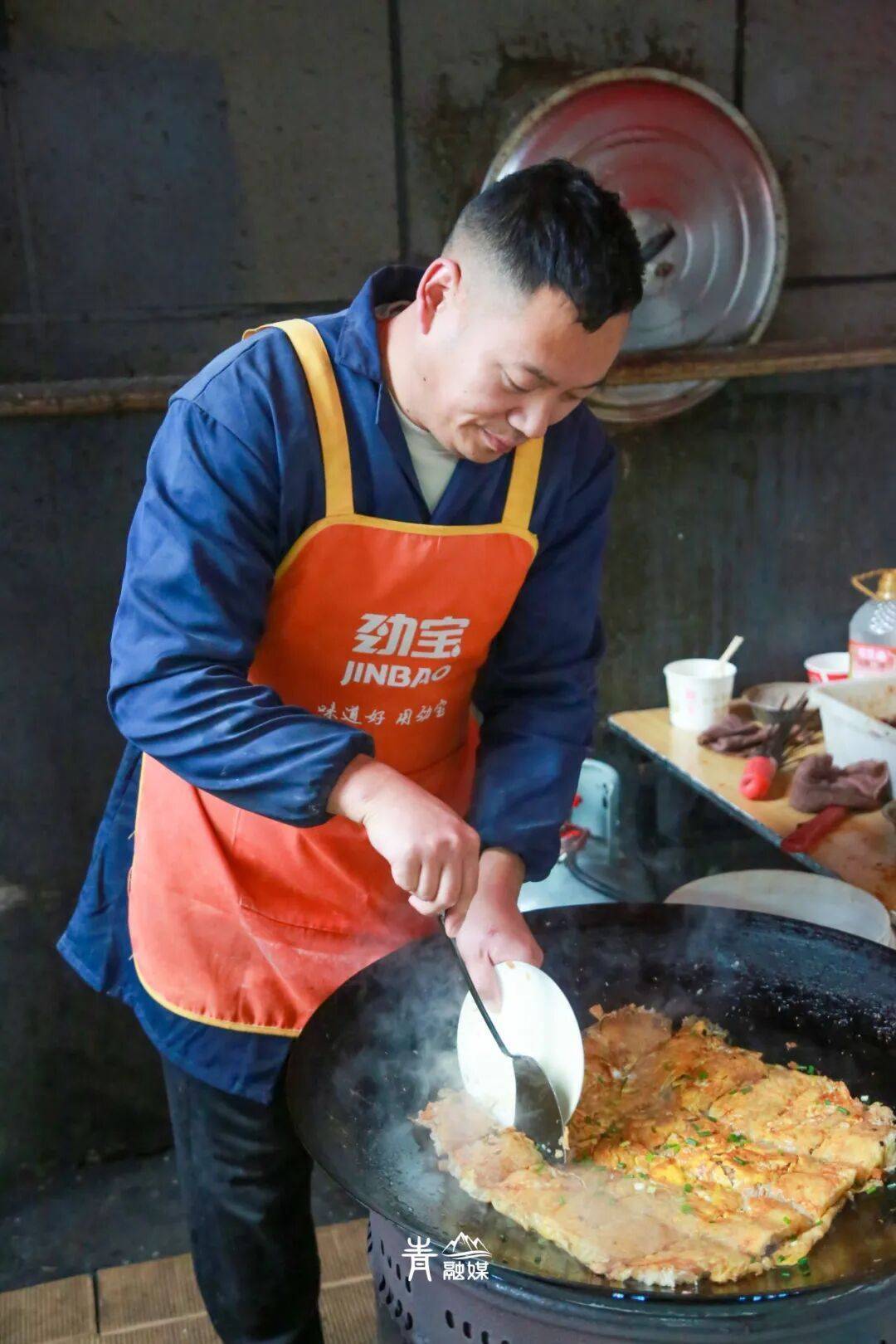 米浆是蛋皮变脆的灵魂。为了这一口脆,他反复调试米浆配比,摊皮时的火候掐得精准,多一分则糊,少一分则软。打在米浆上的鸡蛋,清一色是土鸡蛋,黄澄澄的蛋液裹着米皮,煎出来自带一股浓郁的蛋香。