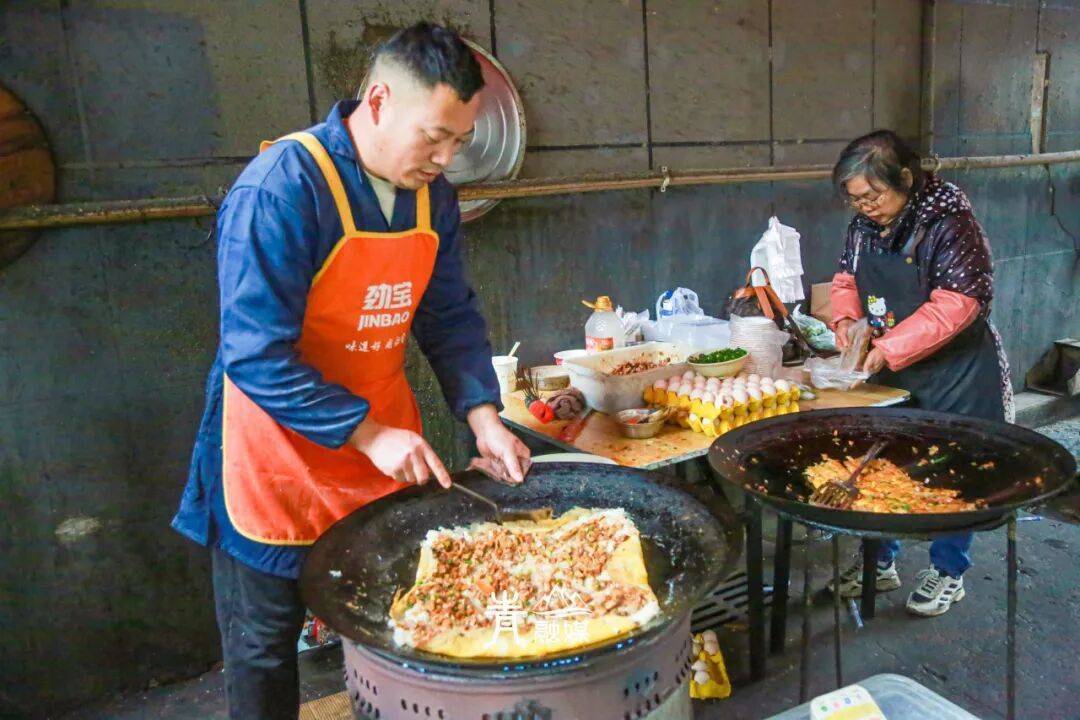 生意渐渐红火起来,刘师傅也没想着换个光鲜的门面,反倒琢磨起了手艺的传承。他把弟弟带在身边,手把手教他调米浆、摊蛋皮、炒臊子,从火候的拿捏到蚌壳的用法,每一个细节都倾囊相授。每天清晨的忙碌时分,兄弟俩一个掌勺,一个打下手,默契十足,灶台前的烟火气也更盛了几分。