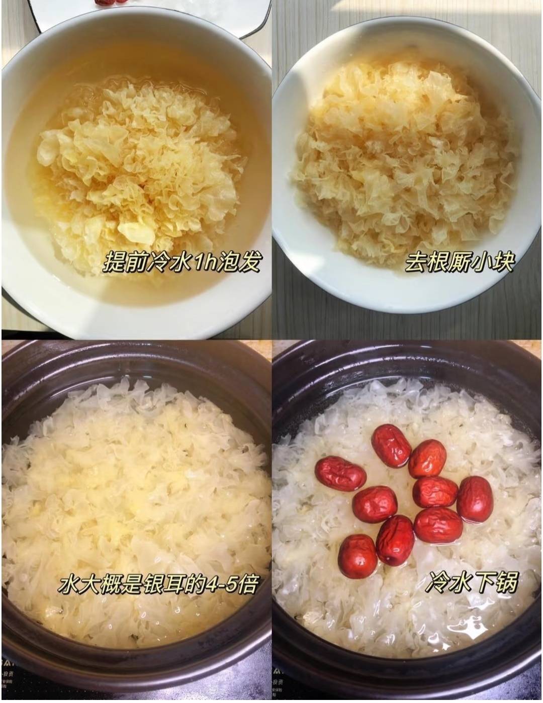 3. 银耳先煮40分钟;