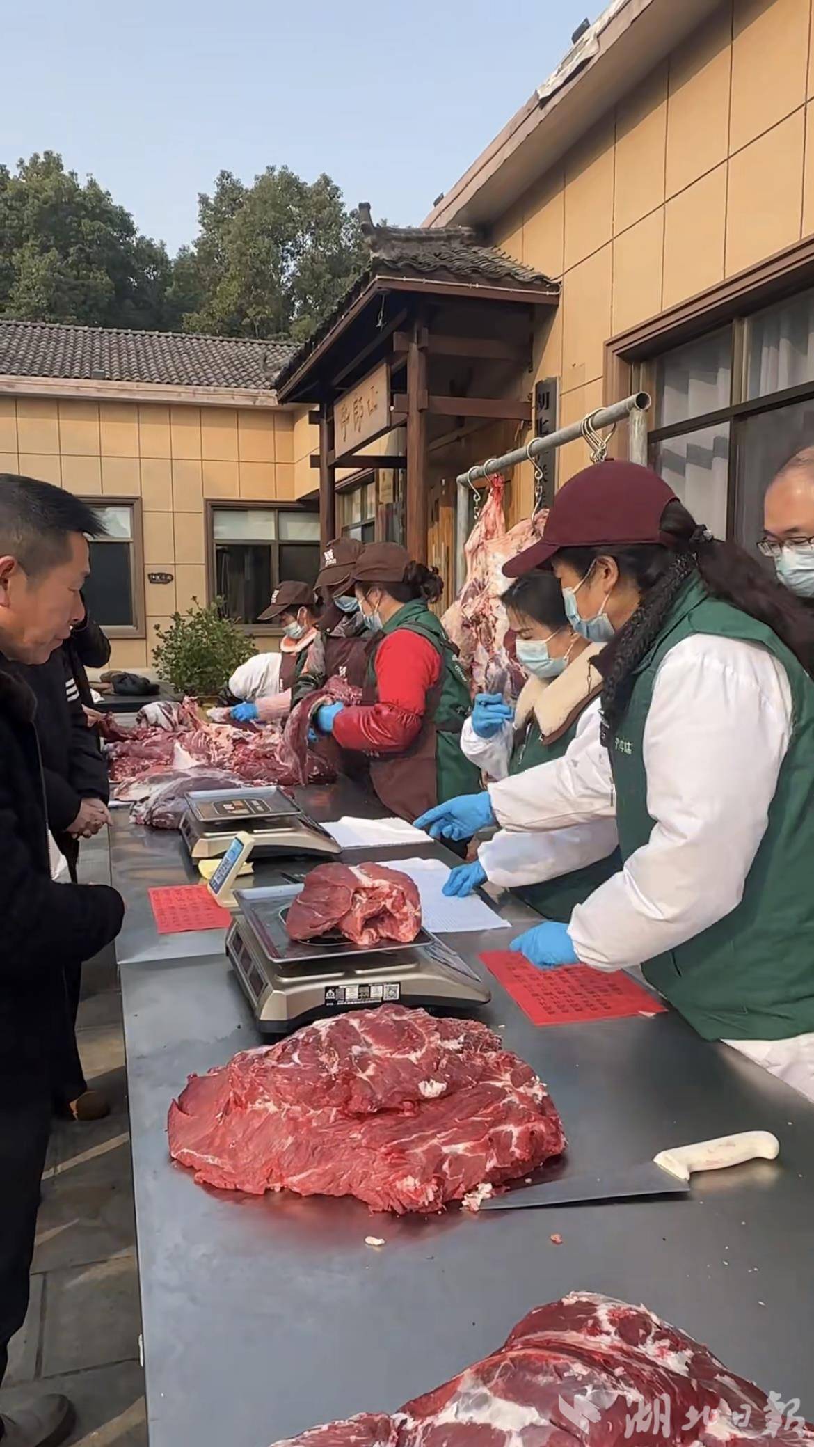 为了让更多人吃上好牛肉,1月18日至2月1日,在枝江市仙女镇牛郎山牛业小镇,湖北丰联佳沃农业开发有限公司打出了广告:鲜牛肉𝟑𝟐元/斤起抢,每天限量供应5头夷陵牛。