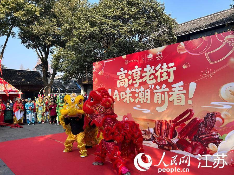这里是南京高淳老街年货大集的现场。咸鹅咸鸭挂满架子,一盆盆香肠、腊肉堆成小山,刚出锅的米糕松软香甜,吆喝声、询价声、笑声交织在一起。