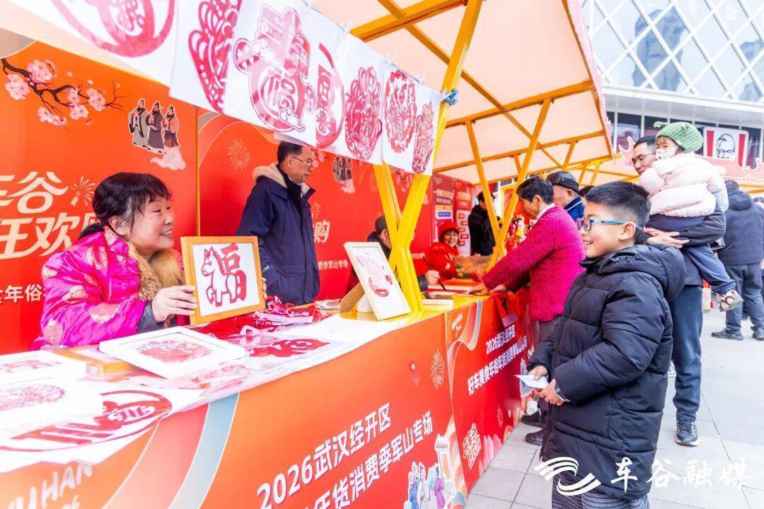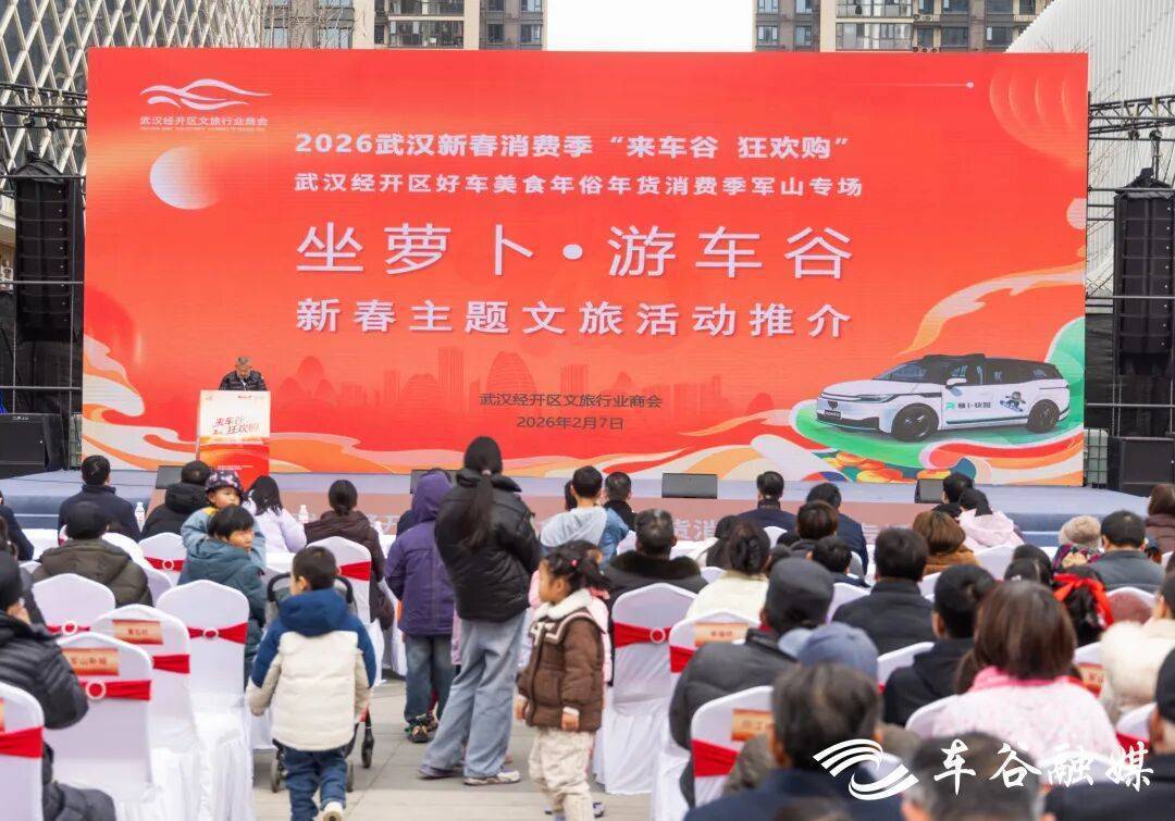 湖北日报客户端讯(通讯员兰林坚 李岿 田钰杰)2月7日,“来车谷,狂欢购”2026武汉经开区好车美食年俗年货消费季军山专场在军山新城车都春台里商圈广场启动。“车谷造”好车与传统年货产品在这里汇聚,市民一站式体验“看车、赏非遗、囤年货、玩亲子、品美食”。