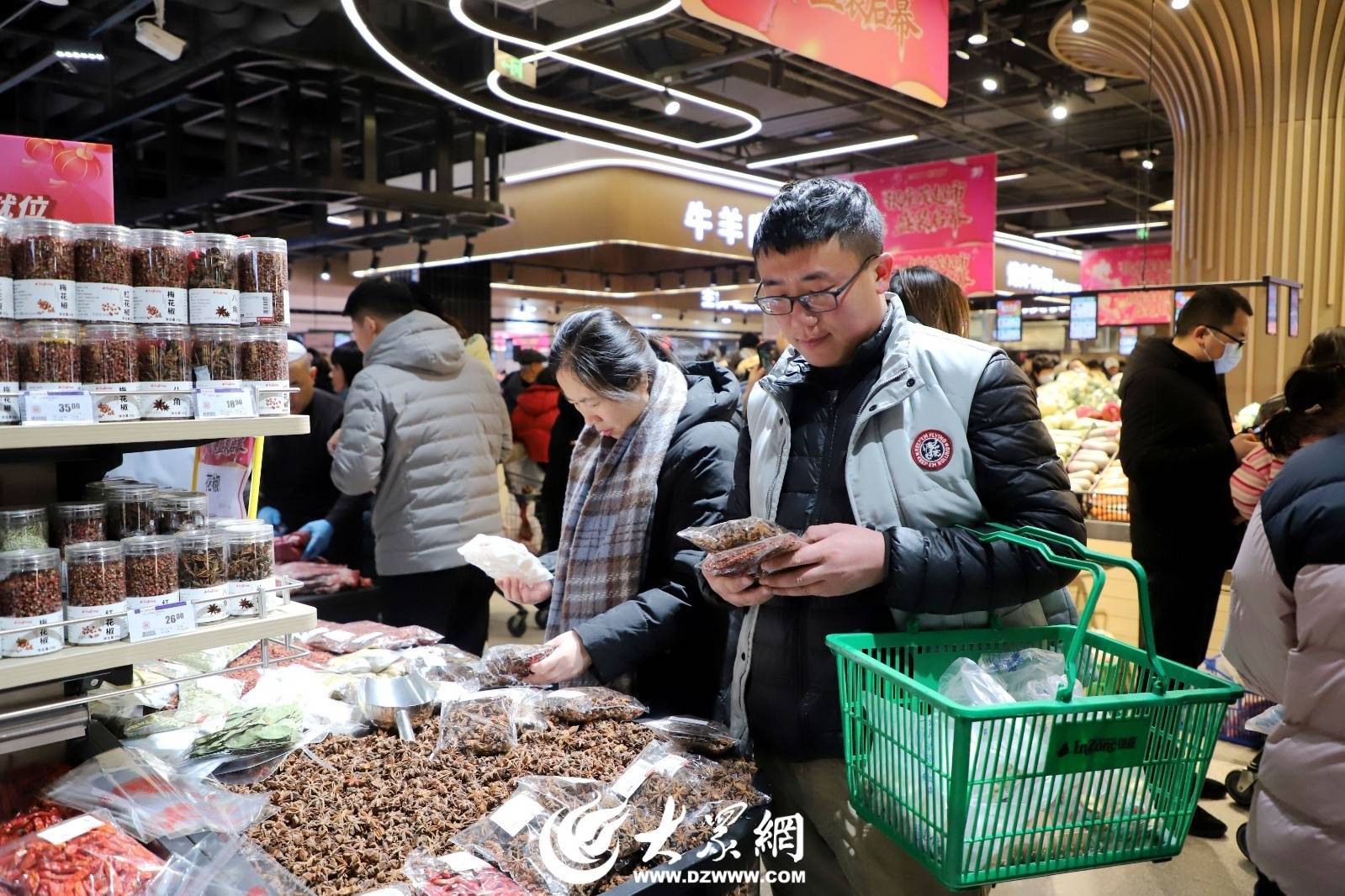 超市内装修整洁明亮、服务设施完善,身着统一工装的工作人员热情周到,主动为市民介绍商品特点、产地优势及开业专属优惠活动,耐心解答各类咨询。不少市民推着购物车,穿梭在各个货架之间,精心挑选心仪好物,现场处处涌动着浓浓的新春烟火气。