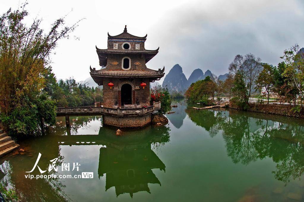2026年2月5日拍摄的广西靖西市新靖镇旧州街文昌塔。