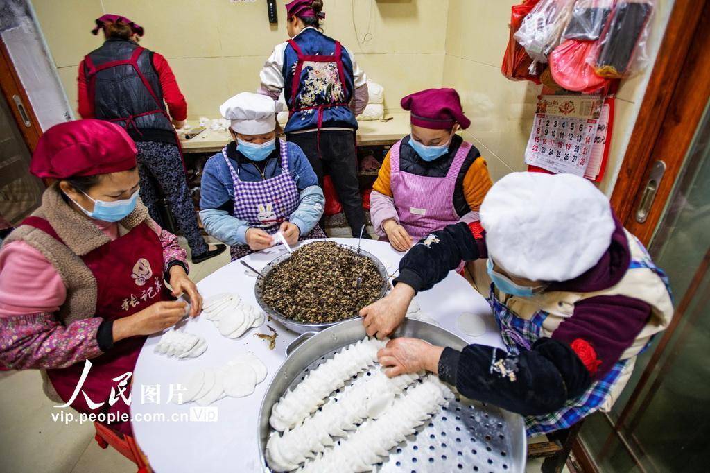 2026年2月8日,在广西靖西市城区步行街一家米饺店,师傅们在制作米饺。靖西米饺采用当地特有的粘梗米制成,皮厚而筋道,馅料醇香,口感软糯。