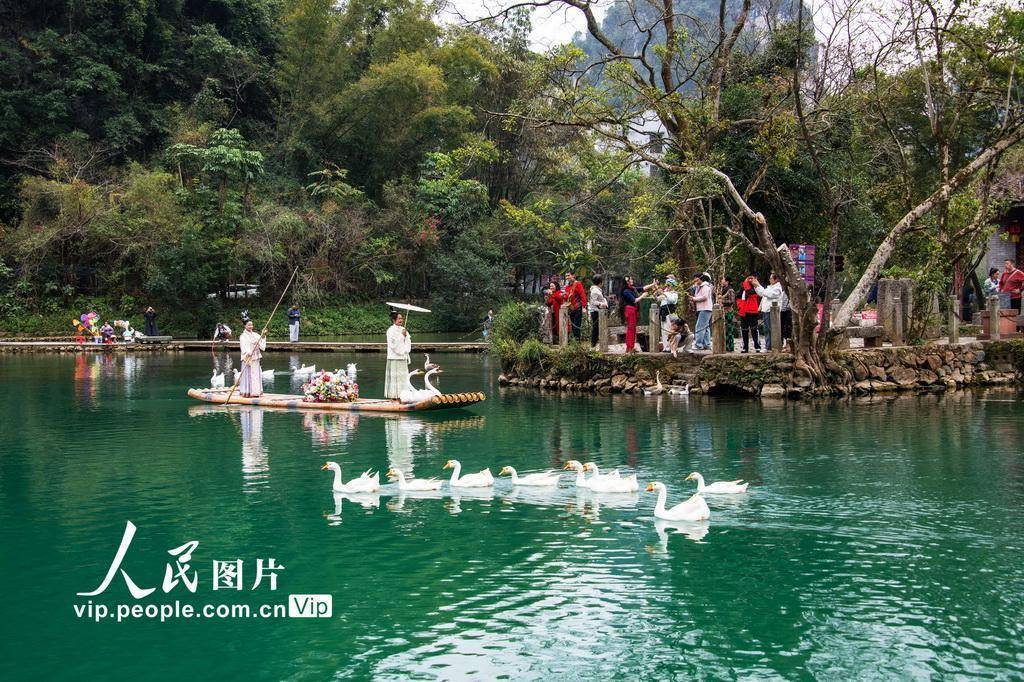 2026年2月5日,游客在广西靖西市新靖镇鹅泉风景区泉水源头游览。