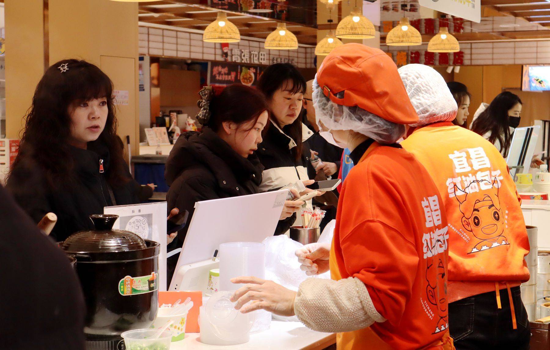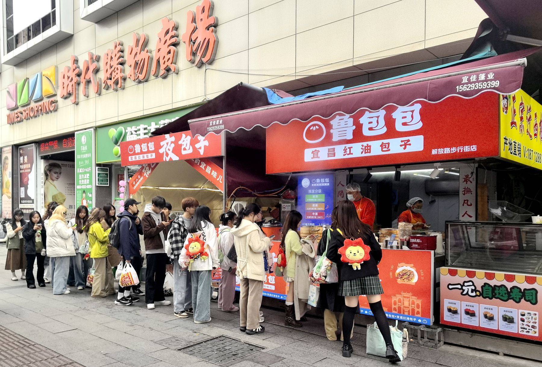 湖北日报客户端讯(通讯员杨菲、魏妤婕)2月9日早上8点,宜昌市国贸商场负一楼,“鲁包包”新店门口已排起长队。蒸笼掀开,热气升腾,红油浸润的包子皮泛着诱人的光泽。