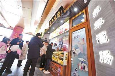 近期,以“马不停蹄,隆福潮集”为主题的2026隆福寺新春市集正在隆福寺商圈热闹举行。2月10日是北方的“小年”,习近平总书记来到东城区隆福寺街区,察看街区风貌,听取城市更新情况介绍,并饶有兴致察看隆福寺新春市集的各式年货摊位,同现场群众亲切交流。昨日,北京青年报记者来到隆福寺新春市集探访,从稻香村的年味小食“三件套”、丰年灌肠,到义利的现烤面包,总书记购买过的多款年货产品受到市民游客青睐,有的直接卖断货。