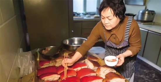 糟肉是兰州春节餐桌的“硬菜”,也是牟家坪村年味的重头戏。在牟素花家,腌制到位的五花肉码放整齐,电蒸锅上汽后,醇香迅速弥漫全屋。“选新鲜五花肉,现煮现腌,用醪糟汁调味,蒸够火候才肥而不腻。”牟素花边调整蒸锅温度边说,如今用智能厨具,蒸制更省心、口感更稳定,老味道不变,制作更便捷。一碗碗糟肉出锅,色泽红亮、香气浓郁,成为年夜饭桌上的压轴美味,承载着全家团圆的期盼。