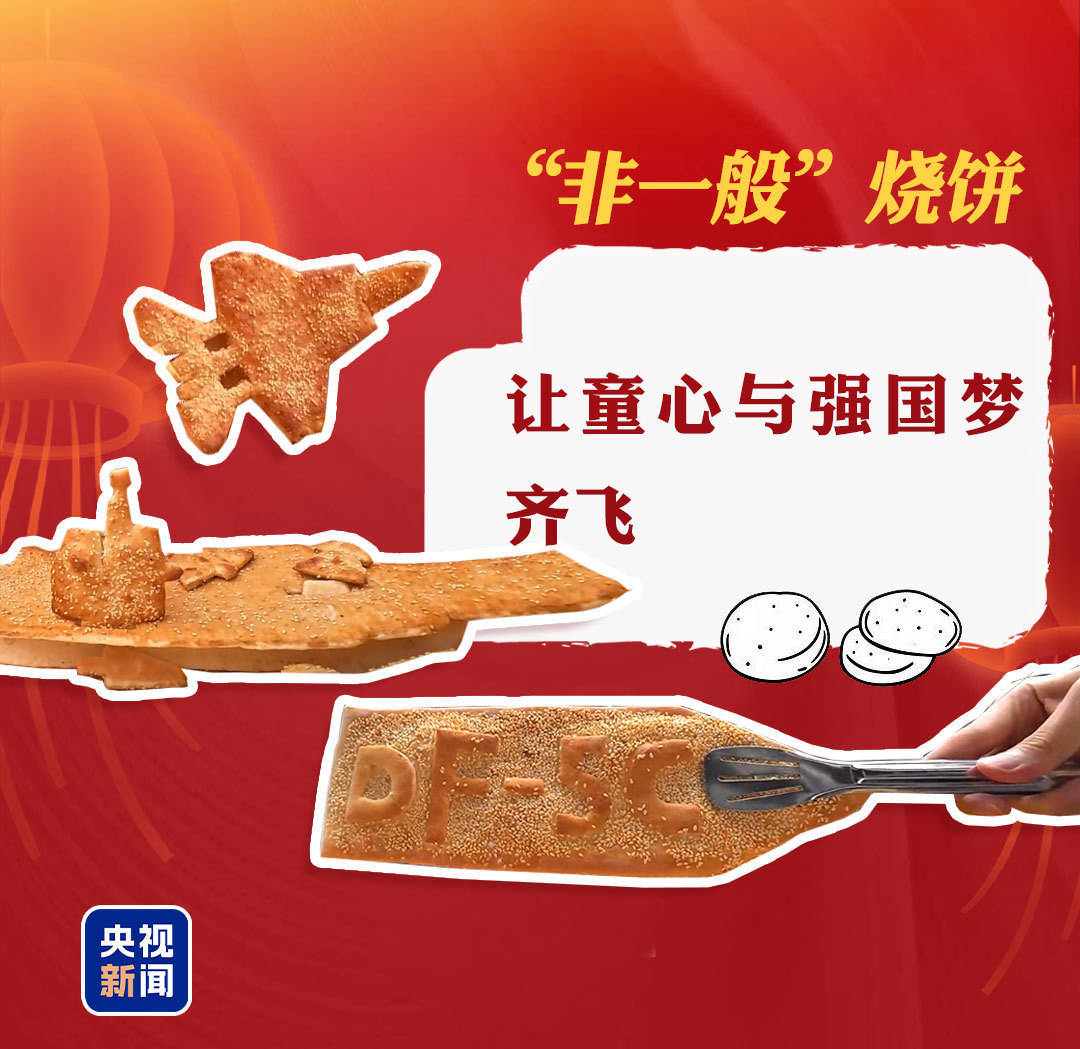 河南小伙杨乾坤,将烧饼做成“歼-20”“东风-5C”等大国重器的形状,一元一个卖给小朋友,大家开玩笑送了他一个昵称——“军火烧饼”销售商。杨乾坤说,这些烧饼里藏着他儿时的心愿,也希望吃着烧饼的孩子们,能够在快乐里找到属于自己的热爱。