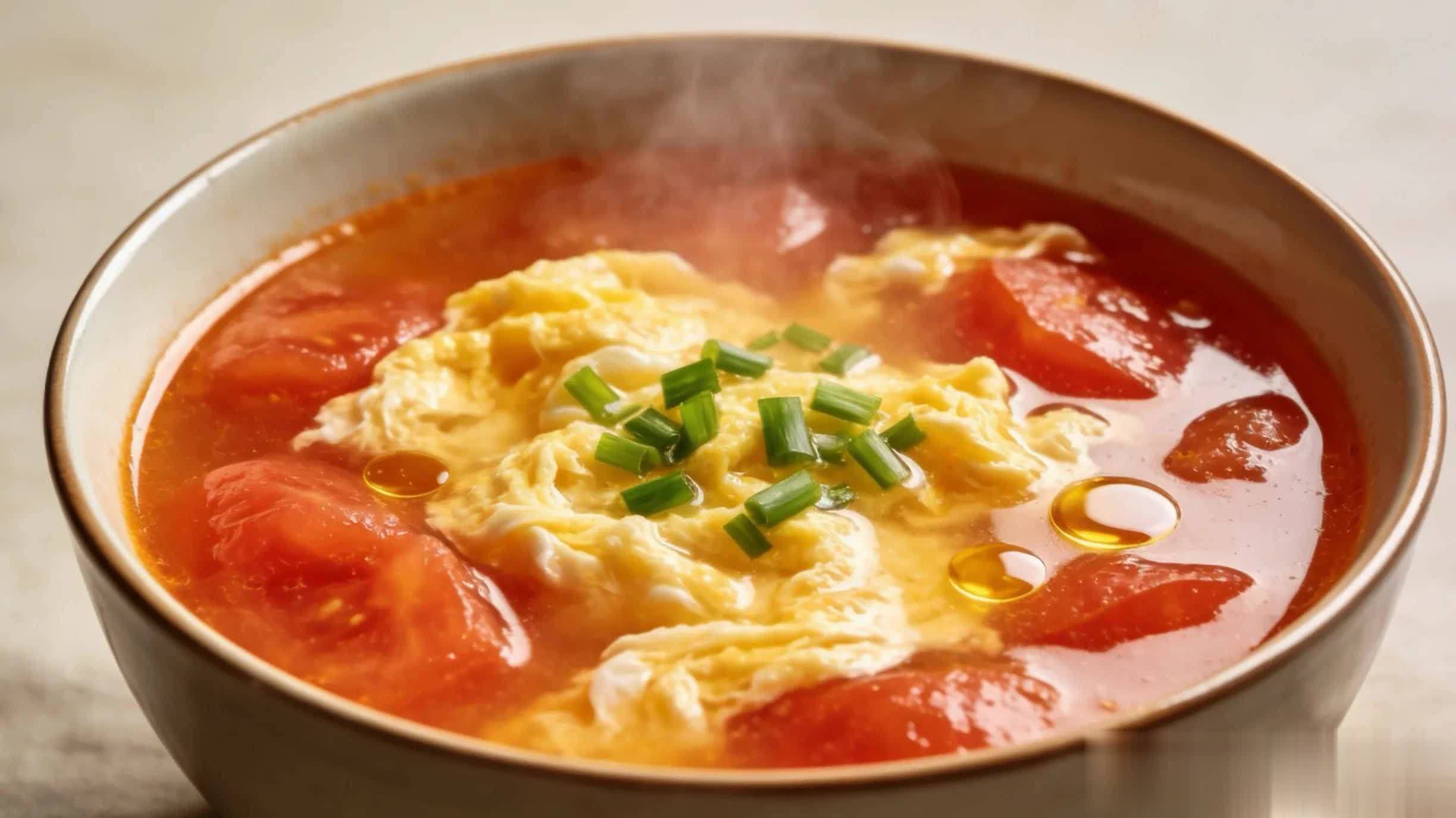 做法:西红柿切块炒出汤汁,加水煮沸;鸡蛋打散淋入锅中,搅出蛋花,加盐、葱花调味,滴几滴香油即可。