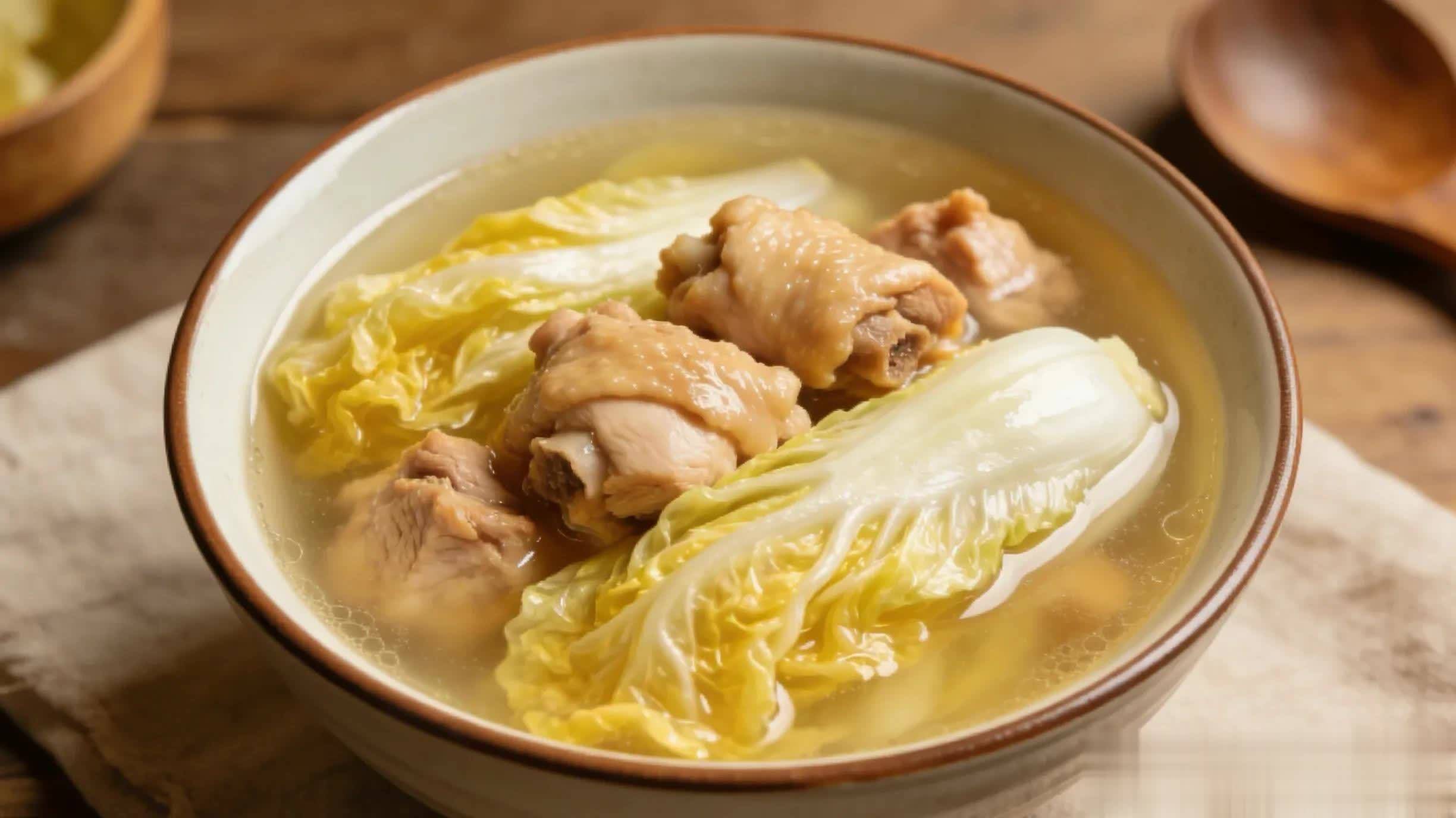 亮点:汤鲜味美,鸡腿肉细嫩,娃娃菜清爽,暖胃又滋补。