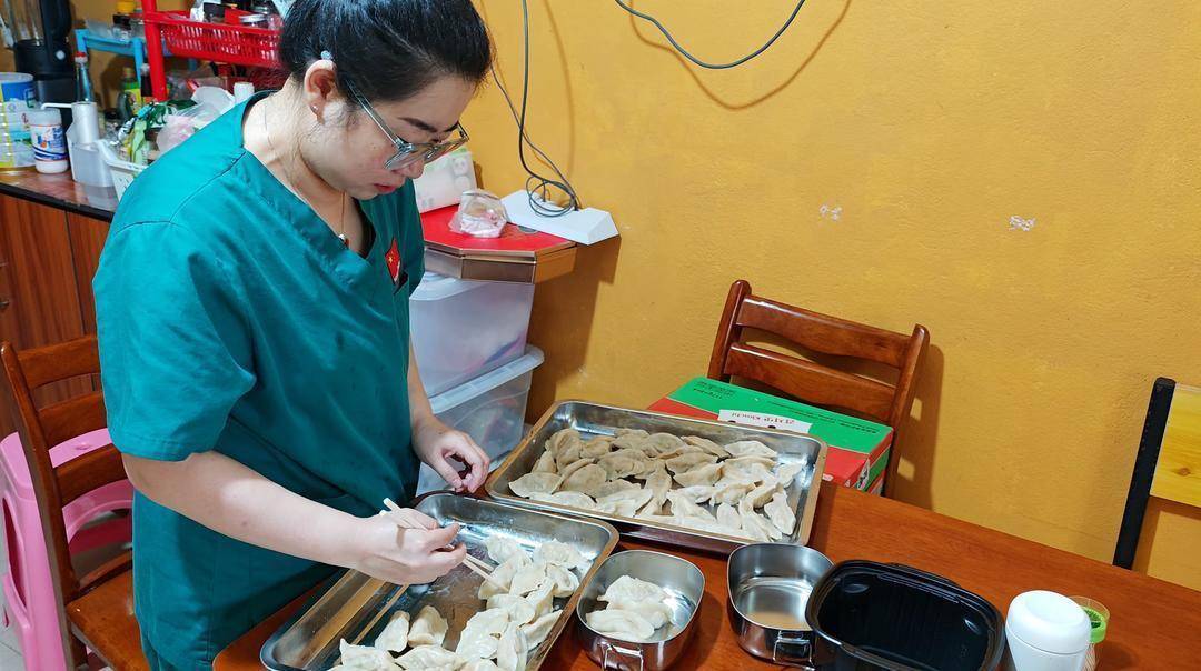 厨房里,项目员工姜涵正在和同事擀皮儿、拌馅,来自孟加拉国的项目工程师Jakaria Masud自告奋勇,教马来西亚的同事包水饺。不一会儿,马来西亚的同事就掌握了擀饺子皮的大致方法,虽然速度有点慢,擀出来的形状却是有模有样。“Masud从孟加拉国达卡机场高架快速路项目开始,就参与了山东高速集团项目的建设,已经是我们的老朋友了。”姜涵介绍。