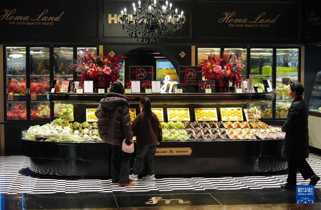 2月17日,游客在西安万象城一家水果店内选购。