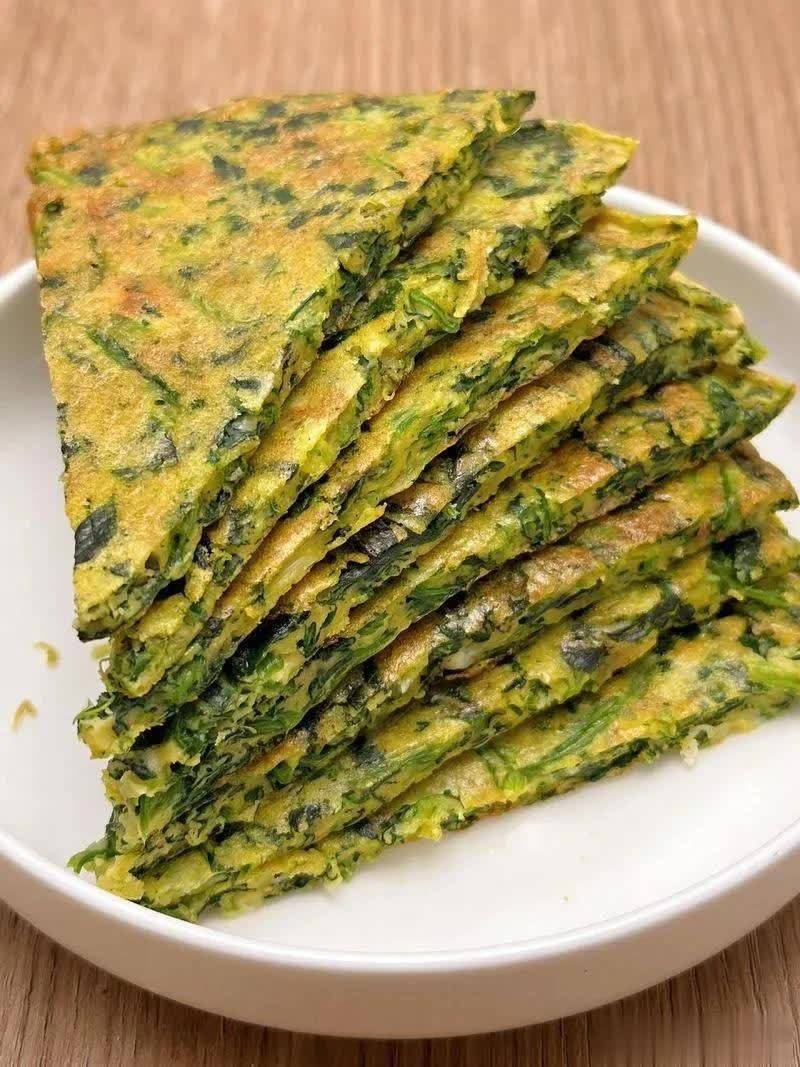 3. 平底锅倒油,倒面糊摊平小火煎,一面金黄翻面煎至熟透,切块即可。