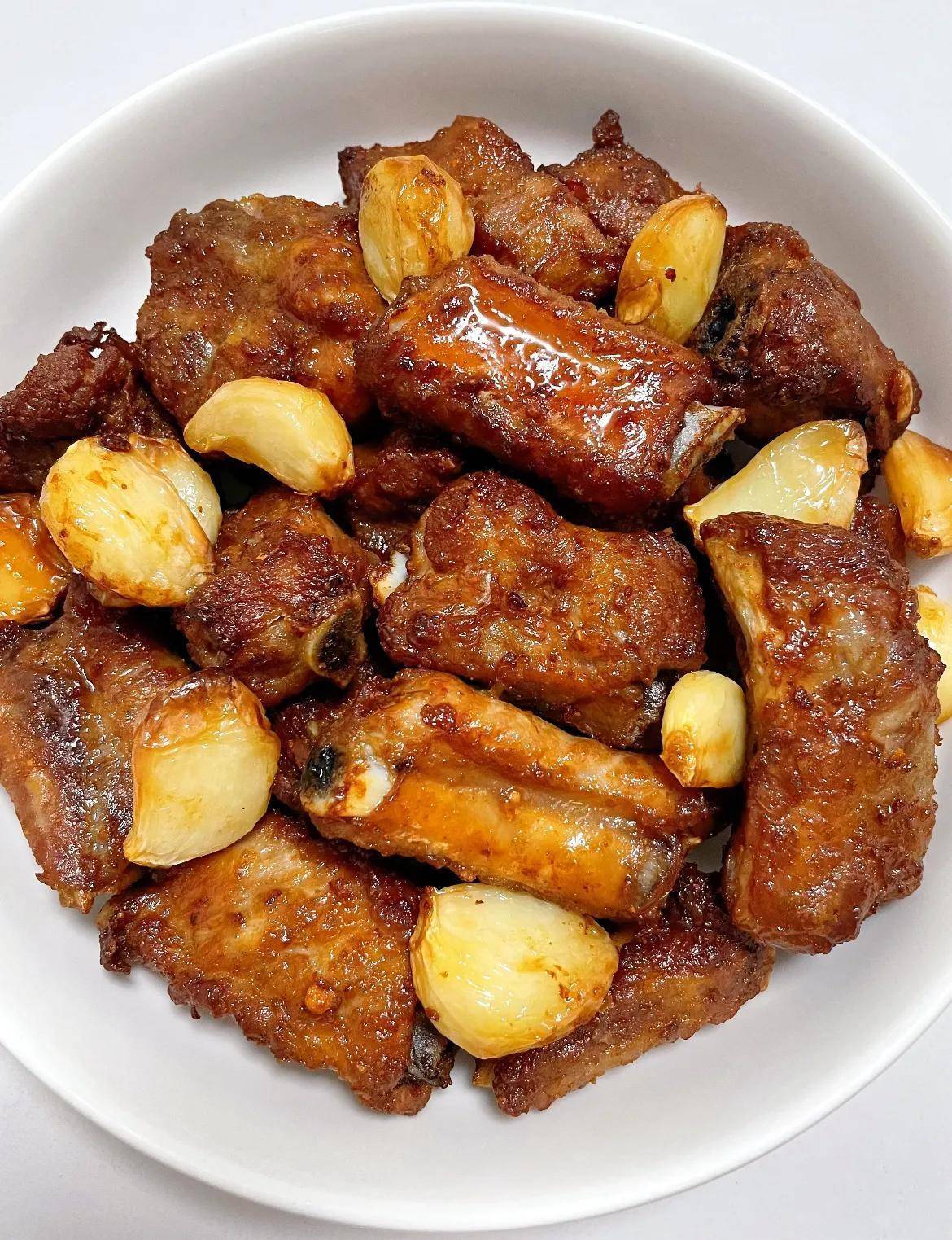 • 午餐:全麦馒头半个 + 红烧排骨2块 + 清炒荷兰豆
