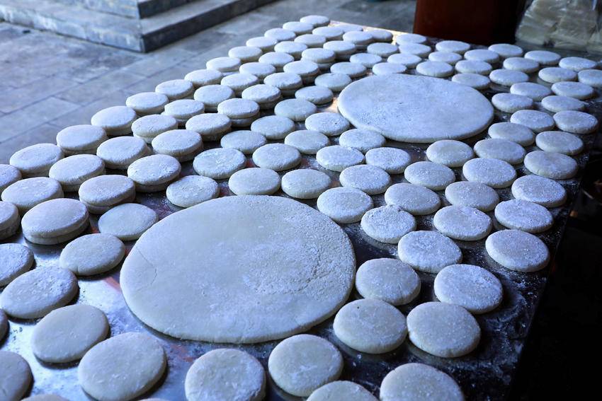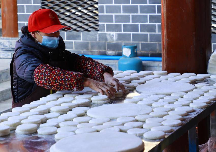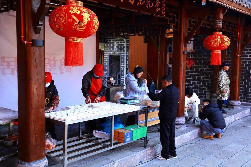 1月13日,在下坪乡留驾村刨汤宴年货集市上,糯米摊上的糯米粑粑十分走俏。