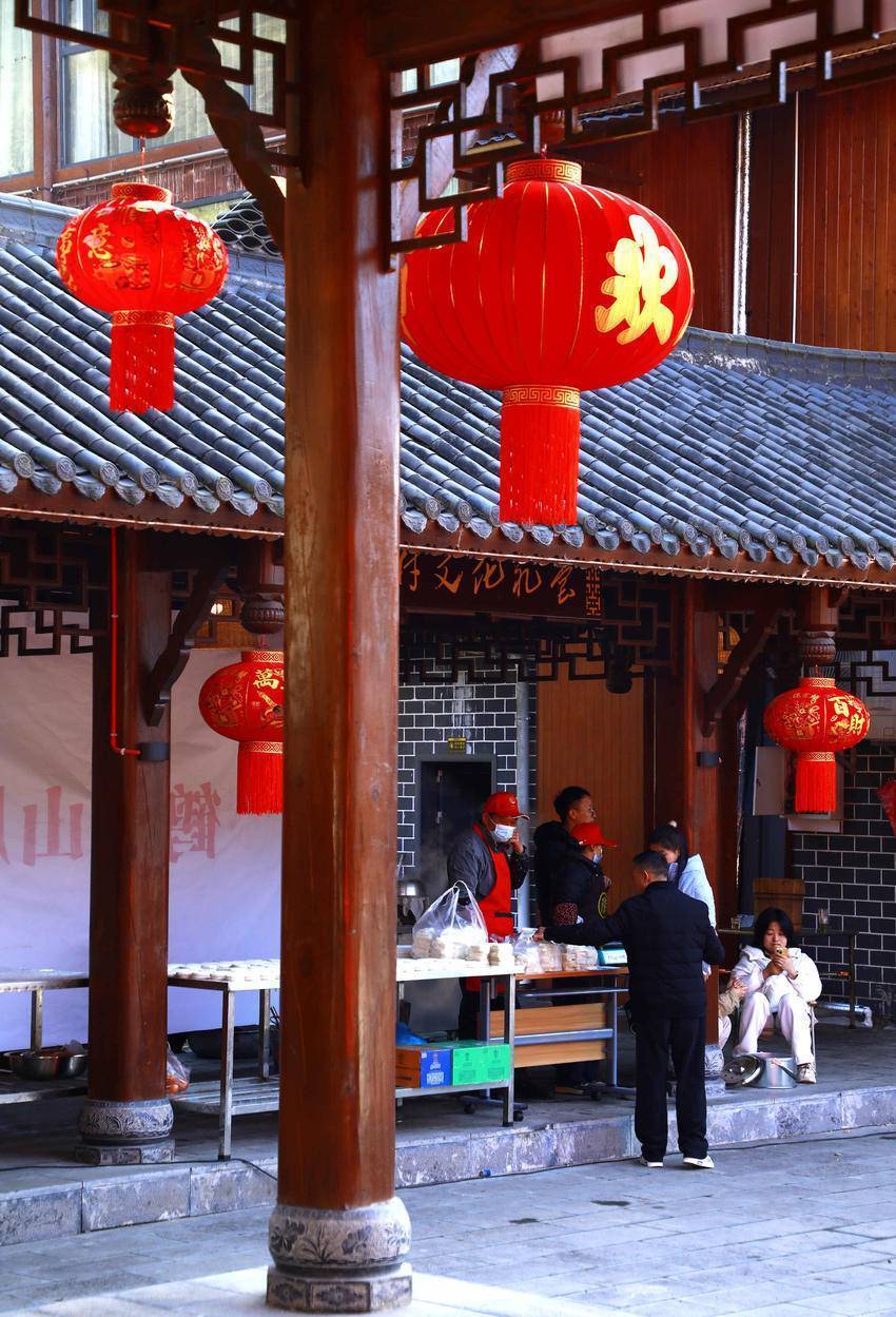 大红灯笼高高挂,把吊脚楼映衬得红红火火。