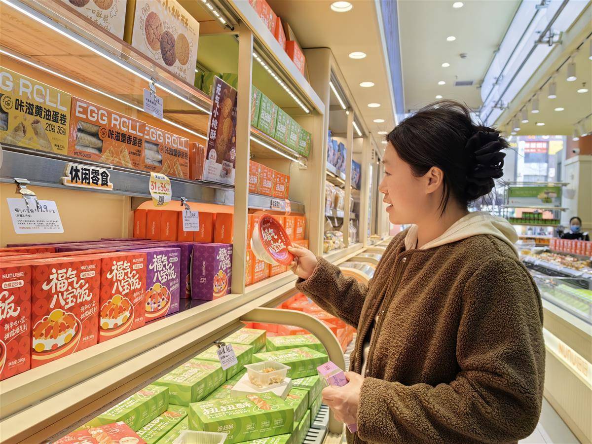 “八宝饭象征着甜蜜团圆和美好,买两碗给孩子们尝个鲜。”在襄阳市樊城区长虹路妞妞民发广场店,不少顾客在挑选八宝饭和现烤面包等产品。