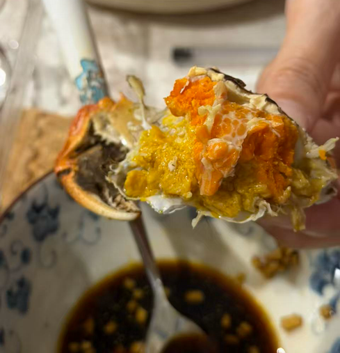 而蟹膏,则是由公蟹的精囊等副性腺及其分泌物组成,煮熟后呈乳白色胶质状,糊嘴粘牙的口感是许多人的最爱。但公蟹的性腺成熟较母蟹更晚,所以也就有了“九雌十雄”、“九月团十月尖”的说法。