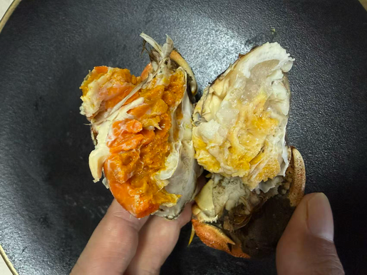 和我们人类依靠血红蛋白来运送氧气不同,大闸蟹靠的是血液中含铜的血蓝蛋白,所以大闸蟹活着时它的血液接近无色,或带有一丝淡淡的蓝灰色。而当它被煮熟后,血液中的蛋白质因高温而发生变性凝固,就成了我们看到的这一坨坨白色固体。食用它们并不会对人体造成什么影响,但它们口味寡淡,也没什么口感可言,实在是和“美味”沾不上边。