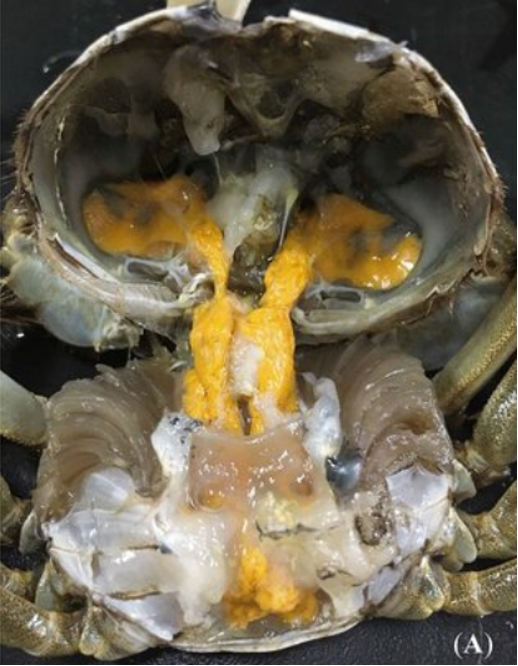 黄色部分即蟹的肝胰腺。图源:Cheng et al. 2021