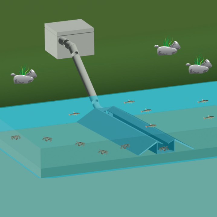 但它们无法像别的水生生物一样轻易游出,只能沿着陷阱内的管道向上爬,结果爬进了设置在两岸的笼子里,就再也出不来了。