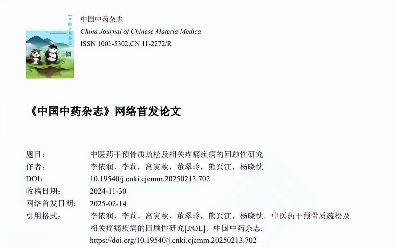 李依润.中医药干预骨质疏松及相关疼痛疾病的回顾性研究,中国中药杂志,2025-02-14