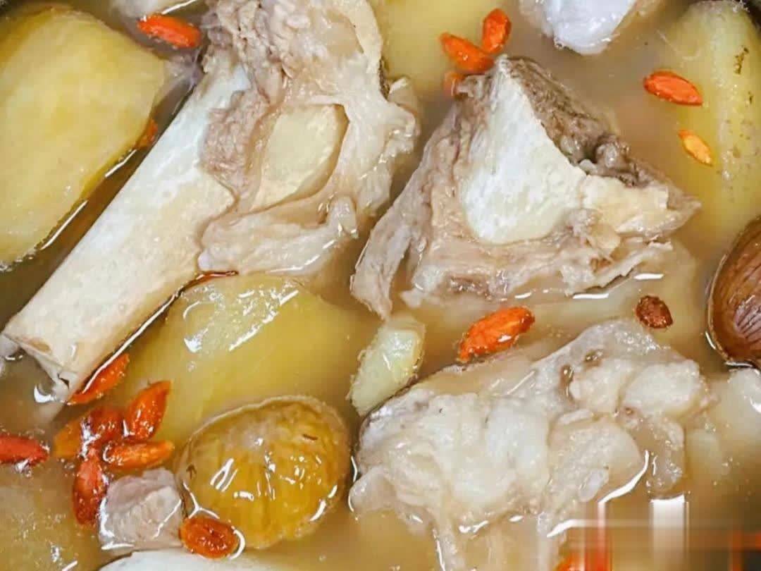 食材准备:苹果、山药、筒骨、板栗、陈皮、蜜枣、姜片、枸杞子。
