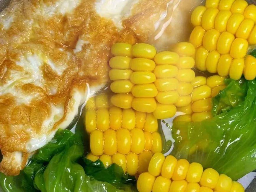2、玉米和清水一起倒入锅中煮半个小时,然后加入鸡蛋和生菜一起煮两分钟。