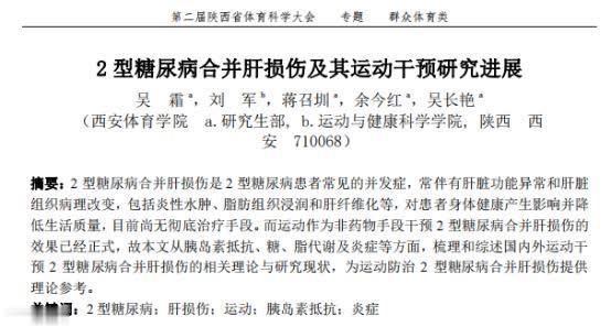[1]吴霜,2型糖尿病合并肝损伤及其运动干预研究进展,第二届陕西省体育科学大会论文摘要集(专题九),2024-06-18